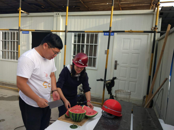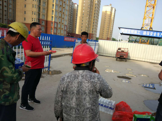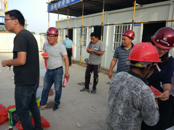 時值夏日,酷暑來襲。5月17日,正值驛城社區(qū)地庫主體完工的日子,在公司董事長的帶領下,深入驛城社區(qū)項目部工地慰問奮戰(zhàn)在工地一線員工,并送上西瓜、礦泉水等防暑降溫用品。